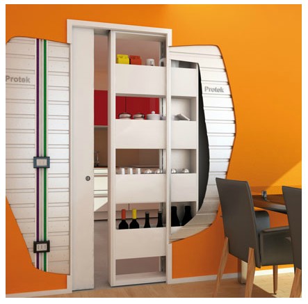 Oggi c’è capitato sotto gli occhi un prodotto davvero geniale e utile che si distingue per creare spazio dove non c’è. Può infatti alloggiare (completamente al suo interno) da un lato una dispensa, una scarpiera o un ripostiglio che scompaiono totalmente nella parete (quando richiusi), e dall’altro consentire lo scorrimento fluido e silenzioso di un pannello porta standard. Quando lo spazio è poco è utile cercare di sfruttare ogni angolo. Questo elemento, oltre a separare in modo elegante ha un forte livello di personalizzazione che lo rende ancora più interessante.
