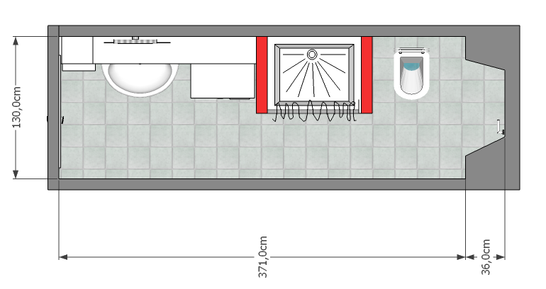 ottenendo lo spazio necessario per posizionare lavabo, bidet, wc e