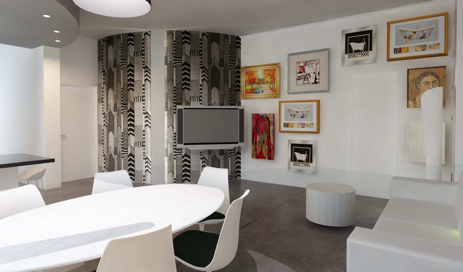3. siete stati davvero bravi.Non facile la progettazione ma risultato perfetto ottimi anche i colori e i contrasti con la carta da parati.E che dire del controsoffitto curvo che richiama il tavolo design molto originale.