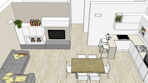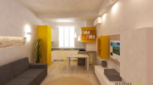 5 dicembre 2016 by maydaycasa - 3 commenti Progetto soggiorno, ingresso e cucina di 38mq in stile “Geometric Grege”